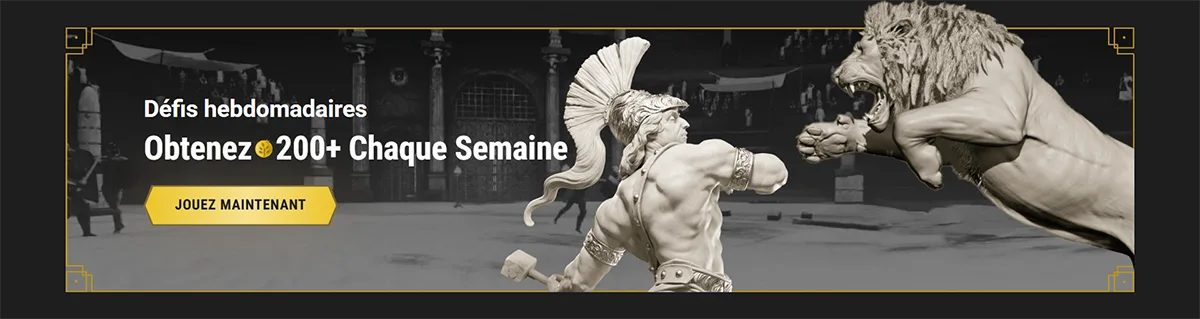Profitez de notre bonus de bienvenue de 100% jusqu'à 500€ + 200 tours gratuits dès votre premier dépôt.